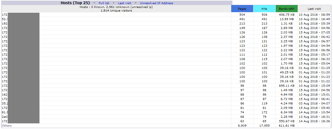 The next step is to track the activity of these users on your website. Another default CPanel tool like Awstats could come in handy here. This tool gives you a complete rundown of activity from each of these IP addresses including the number of pages the user visited, the number of hits, their last visit and so on.