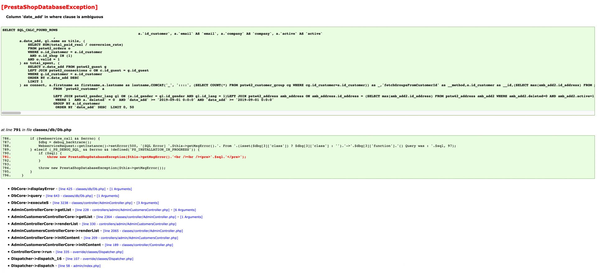 J'ai l'erreur suivante après avoir appliqué un tri par date d'inscription dans Clients -> Clients (PS 1.6)