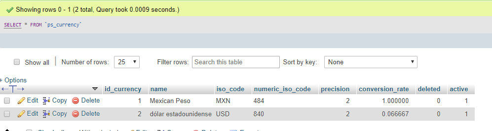 cyb3r Posted September 4, 2019 Author Share Posted September 4, 2019 2 hours ago, Gerardo Martinez G said: no se si sea el caso, pero dale un vistazo a esta tabla de la base de datos ps_currency precision, esos son los decimales que quieres que se muestren. numeric_iso_code, pon el codigo de la monedas que estes usando https://www.ibm.com/support/knowledgecenter/en/SSZLC2_7.0.0/com.ibm.commerce.payments.developer.doc/refs/rpylerl2mst97.htm y te recomiendo que regeneres la indexacion de las busqueas espero te ayude... Gracias Gerardo! Conforme pueda hago la prueba y os comento como ha ido, muchas gracias! Link to comment Share on other sites More sharing options...