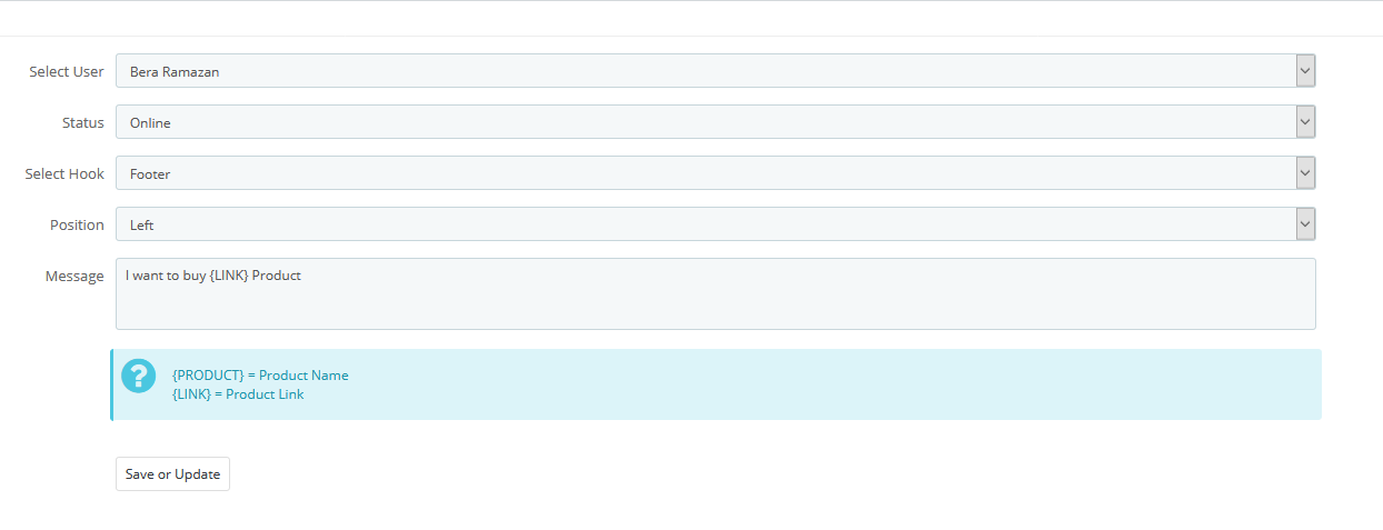 bera_ramazan Posted September 4, 2019 Share Posted September 4, 2019 Whatsapp on cilick open to web whatsapp or whatsapp app Add multi user Add Multi Cloumn Show message Working hours Select status : Online , Bussy or Ofline Add user picture Efect image You can also add the picture and the name of your customer representative. You can write down the note you want according to whatsapp status. With instant status change, you can specify that you can return to messages later. You can easily find out which product page your customer is on thanks to product name and product name on the product page so you can present detailed information about that product immediately. You can get easy access to your tablet or mobile if you want it on your pc. Automatically open the WhatsApp application on mobile devices and the web.whatsapp page on a PC DEMO BUY NOW Link to comment Share on other sites More sharing options...