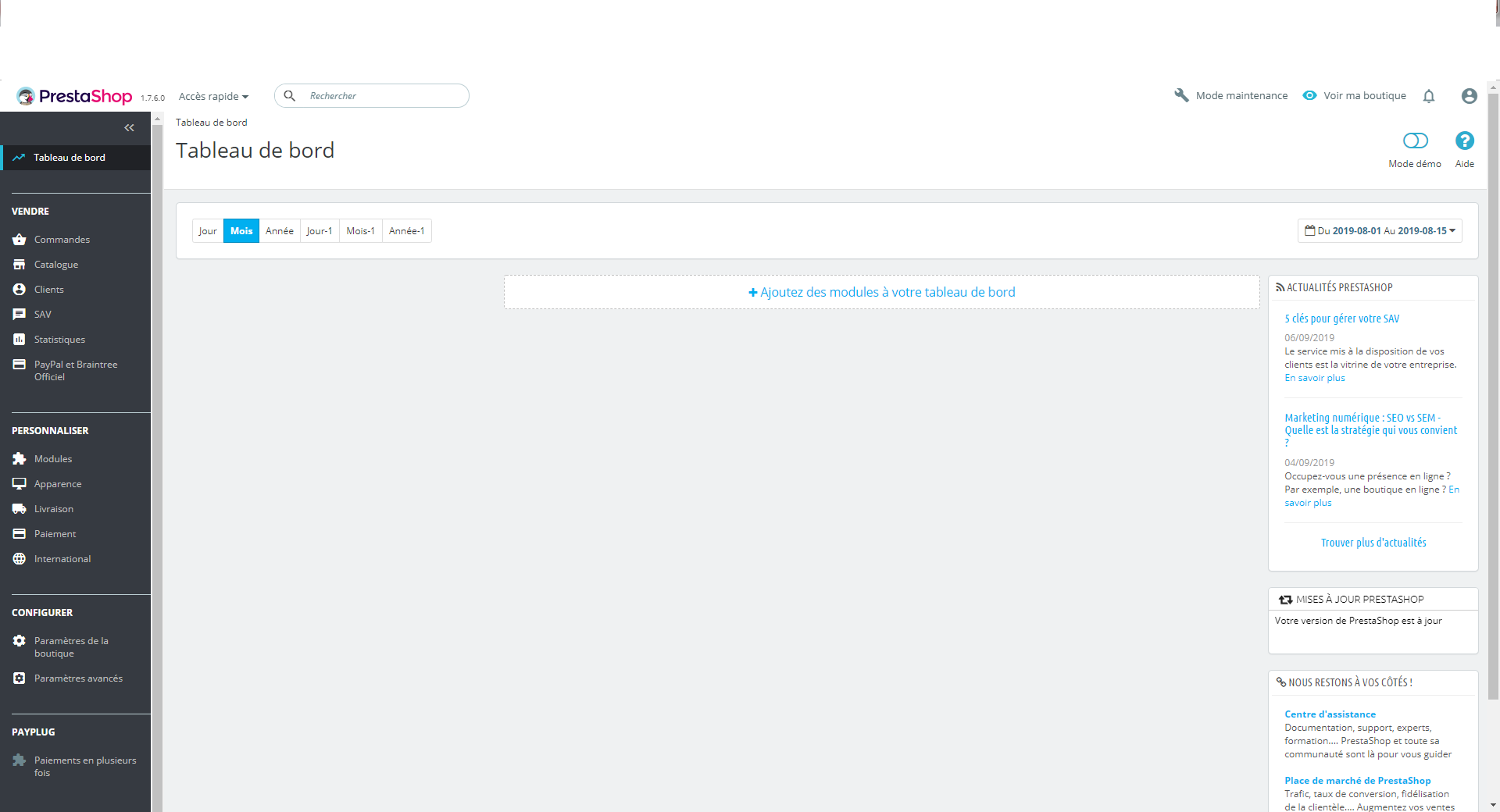 TidZ Posted September 11, 2019 Share Posted September 11, 2019 Bonjour, Quelqu'un peut-il m'indiquer comment ajouter des outils au dashboard de mon BO ? J'ai beau cliquer sur le lien, ça m'envoit vers l'achat de modules, j'en avais installé un mais impossible qu'il apparaisse là... Merci ! Link to comment Share on other sites More sharing options...