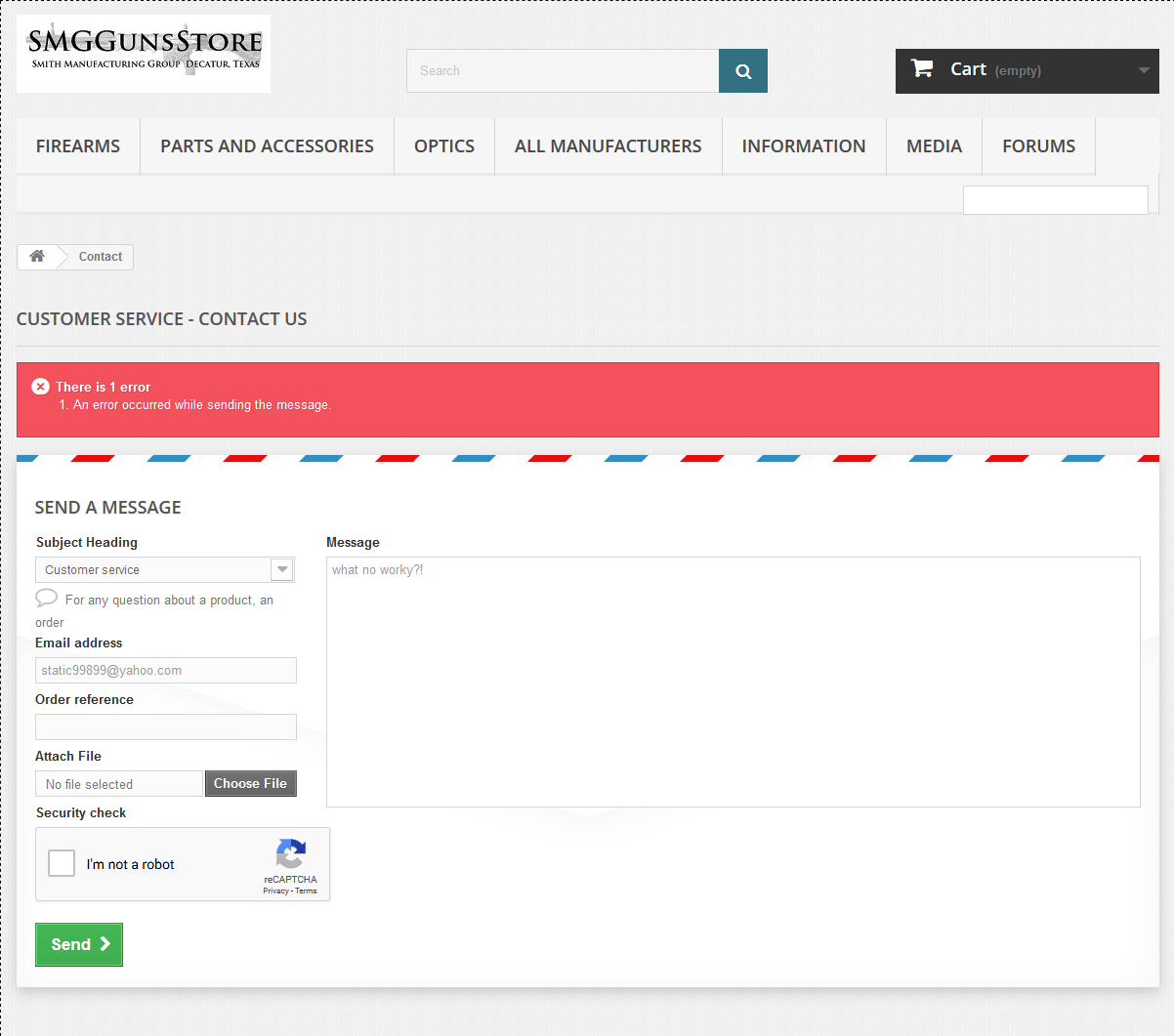 $this->errors[] = Tools::displayError('An error occurred while sending the message.');