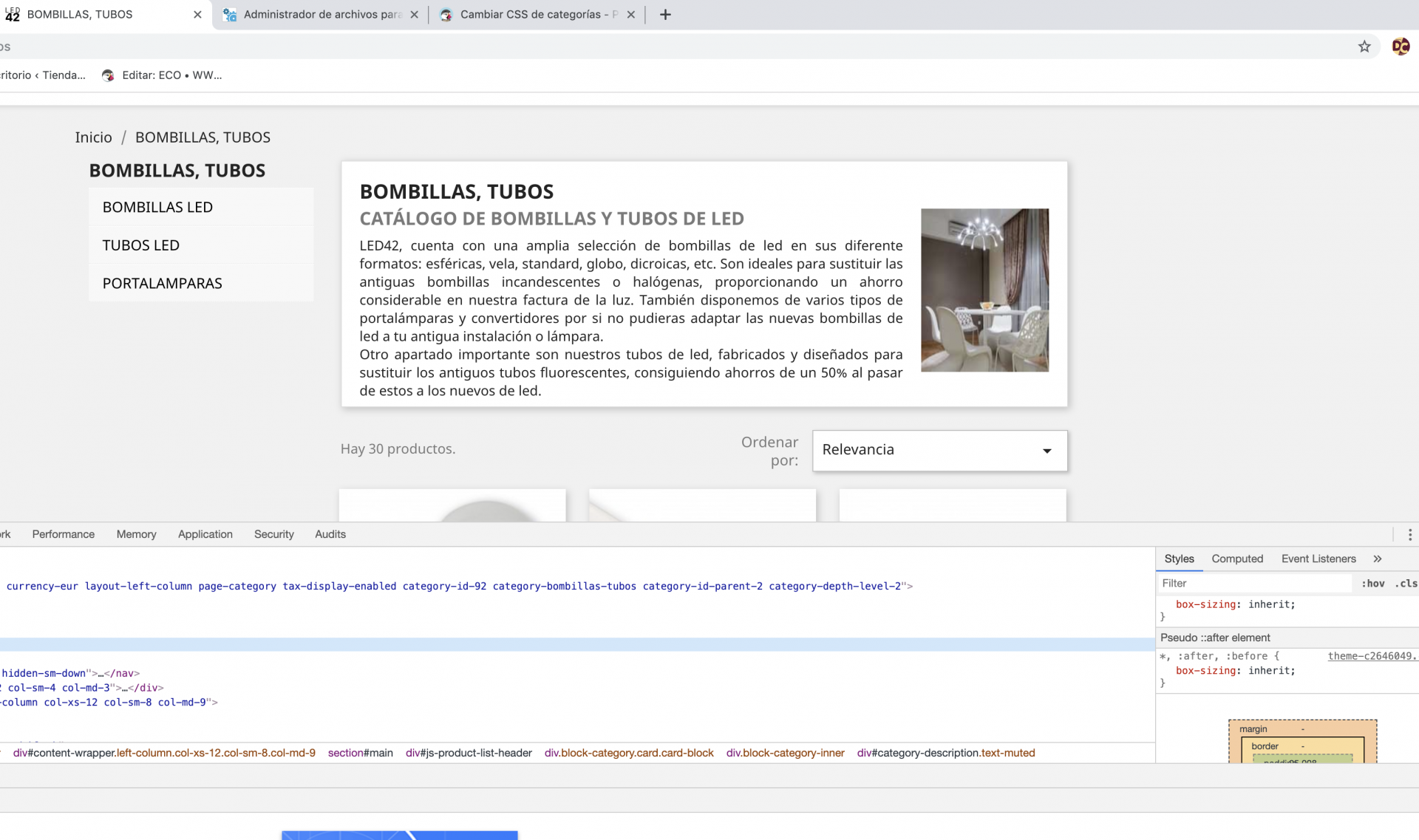 Cómo poner un margen al texto descriptivo de las categorias, subcategorias, etc.