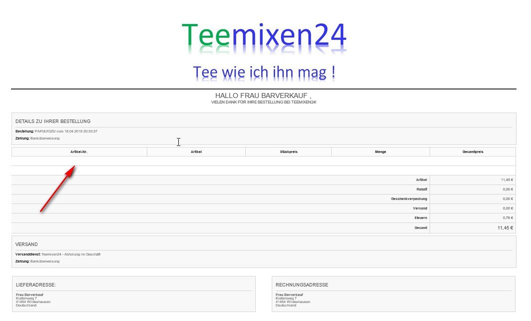 Lisa Meyer Posted September 25, 2019 Share Posted September 25, 2019 Hallo, wir benutzen den Prestashop 1.7.5 . In der Email für die Bestellbestätigung werden keine Artikel angezeigt - nur die Summen. Gibt es eine Möglichkeit, das einzustellen? Vielen Dank im Voraus !!! ________________________________________ Hi, we use the Prestashop 1.7.5 In the order confirmation email no items are displayed - just the totals. Is there a way to set that? Thanks in advance !!! Link to comment Share on other sites More sharing options...