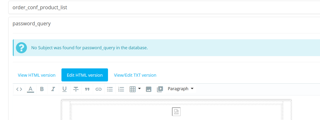 Dan1 Posted September 28, 2019 Share Posted September 28, 2019 How to edit email subject in ps 1.7.6? I know how to edit email body in themes/mytheme/mails/ or in BO translations, but email subject can't be edited in either. In BO - translations - email - subject, there are no expressions to edit. In BO - translations - email - body - core emails I can find the email whose subject I want to change but it also states: No Subject was found for password_query in the database. In this case I want to change the subject of the password reset email. Link to comment Share on other sites More sharing options...