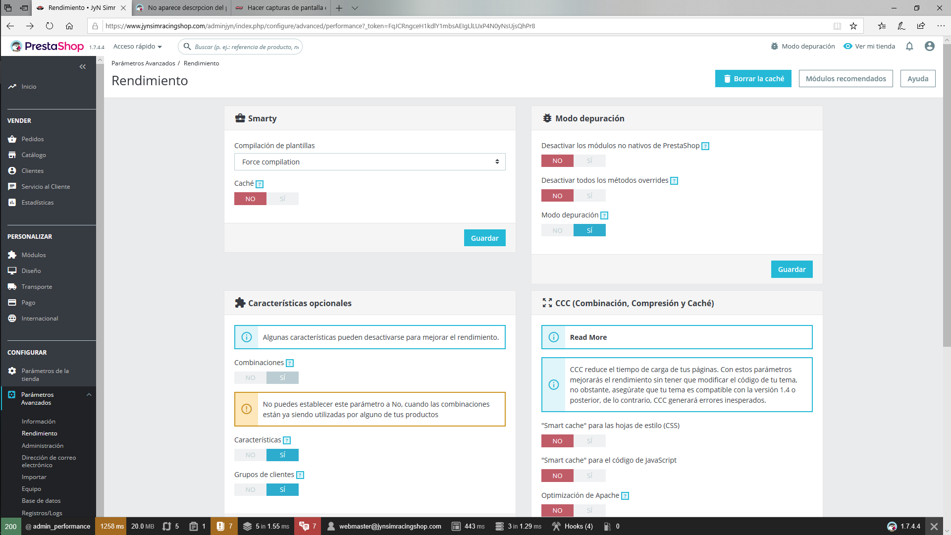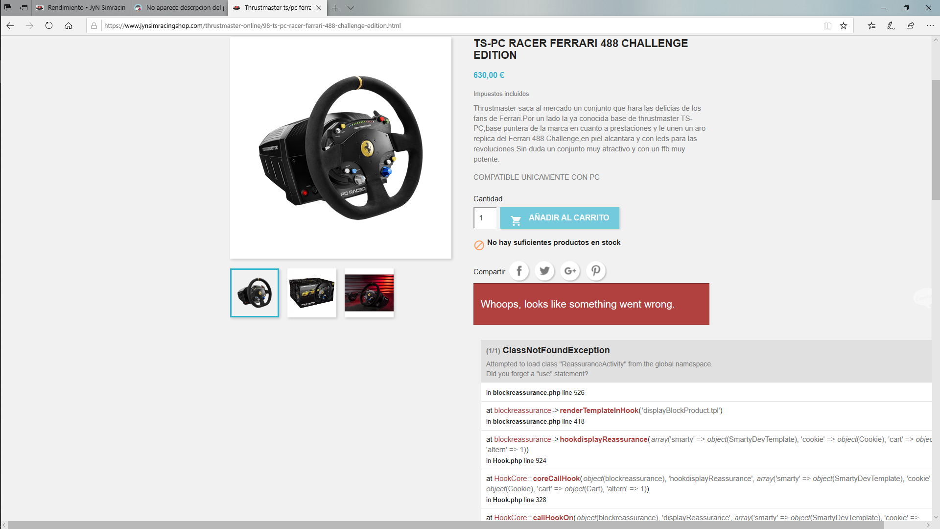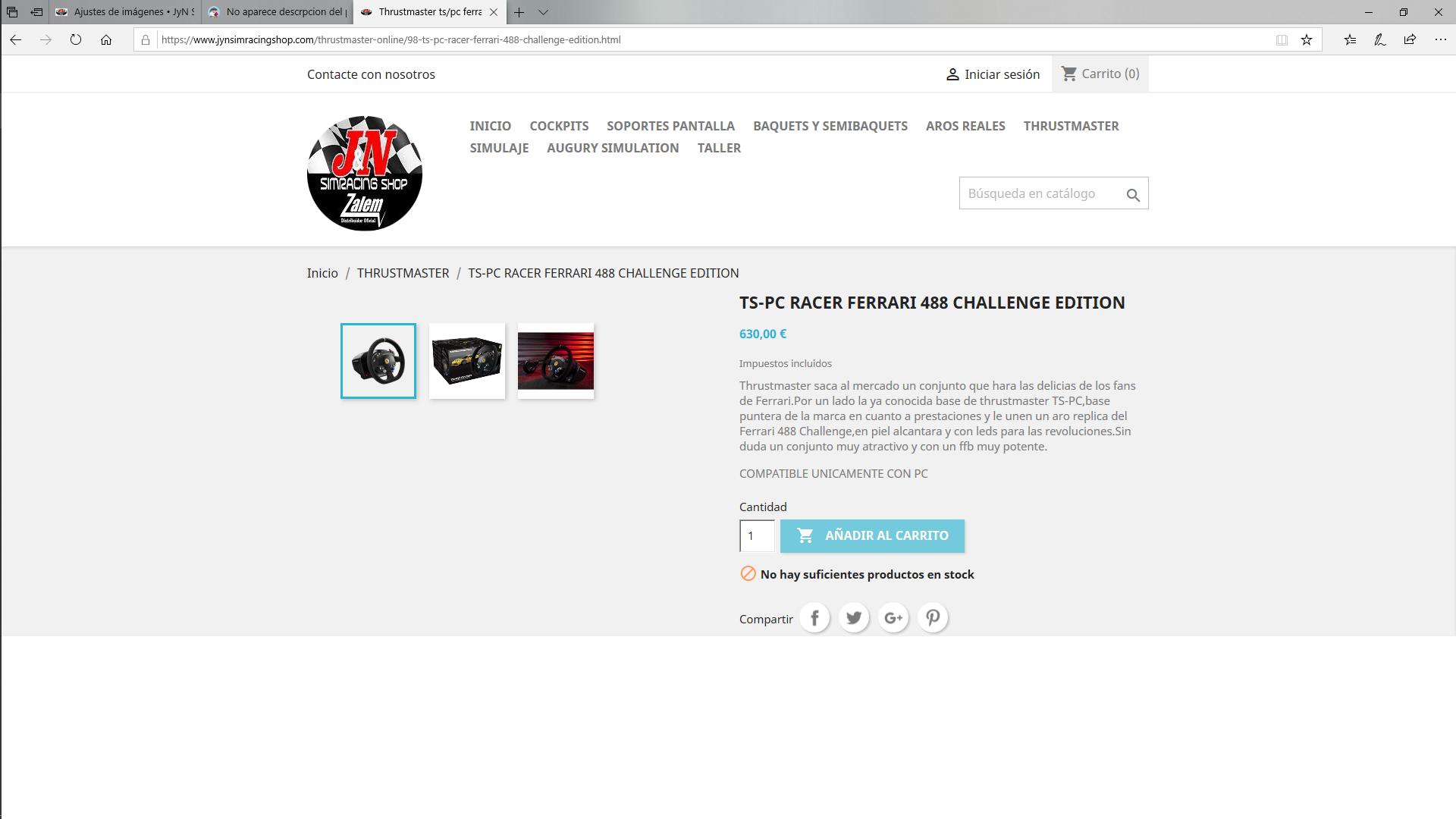 Joaquin 14 Posted October 7, 2019 Author Share Posted October 7, 2019 Hola buenas,gracias por contestar..mira,la pagina la estoy creando,la tengo en mantenimiento,la quito del modo mantenimiento y te paso enlace. https://www.jynsimracingshop.com/ Gracias,es muy raro,y es que aparte de no salirme la descripción,las imágenes no se amplian y en productos con atributos que tienen cambio de precio no me lo cambia,y todo antes me iba perfecto... lo que me deja algo mas tranquilo es que en la pagina del producto,donde lo creas,si aparece todo bien,lo único que hice es en los modulos instalados,me aparecia que tenia que actualizarlos.le di a actualizar,no se si tendrá algo que ver,yo he mirado y esta todo activado,no se,soy novato en esto de las webs,agradeceria ayuda. Muchas gracias!!! Link to comment Share on other sites More sharing options...