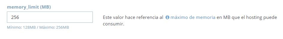 Prestafan33 Posted October 22, 2019 Share Posted October 22, 2019 Mira a ver si el panel del hosting te permite, en las opciones relativas a PHP, aumentar la cantidad de memoria asignada, algo así como esto: Si no, tendrás que contactar con soporte del hosting para consultarles cómo aumentarla, aunque es posible que te pidan que migres el hosting que tienes contratado a un plan superior. 1 Link to comment Share on other sites More sharing options...