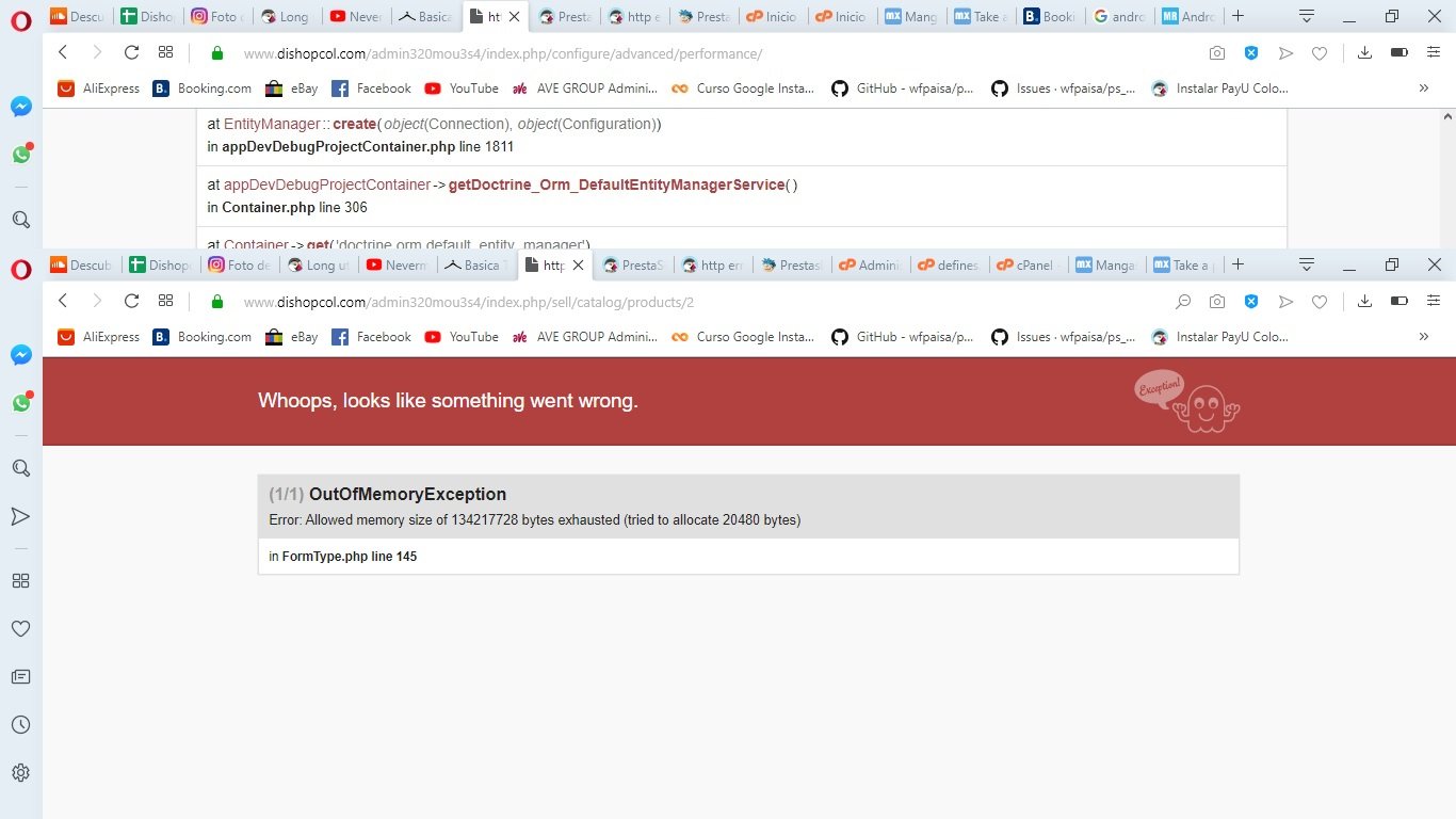 Prestafan33 Posted October 22, 2019 Share Posted October 22, 2019 Eso es un problema de recursos insuficientes. El servidor se queda sin memoria suficiente para realizar la operación que estás intentando hacer. ¿Qué es exactamente lo que quieres realizar? ¿Guardar un producto con muchas combinaciones? Link to comment Share on other sites More sharing options...