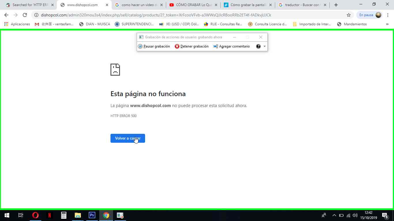 dishopcol Posted October 17, 2019 Share Posted October 17, 2019 Hola Un buen dia a tods. estoy ingresando productos a mi tienda, cuando llevo unos cuantos, me sale un letrero rojo en la parte superior derecha y luego me lanza el "http error 500". puedo ingresar al administrador normal, si intento hacer lo mismo me sale el mismo error. Puedo ingresar hasta cierta cantidad de productos hasta que me sale error. la verdad no se por donde buscar, agradezco si alguien sabe lo que sucede y me explique. gracias Link to comment Share on other sites More sharing options...