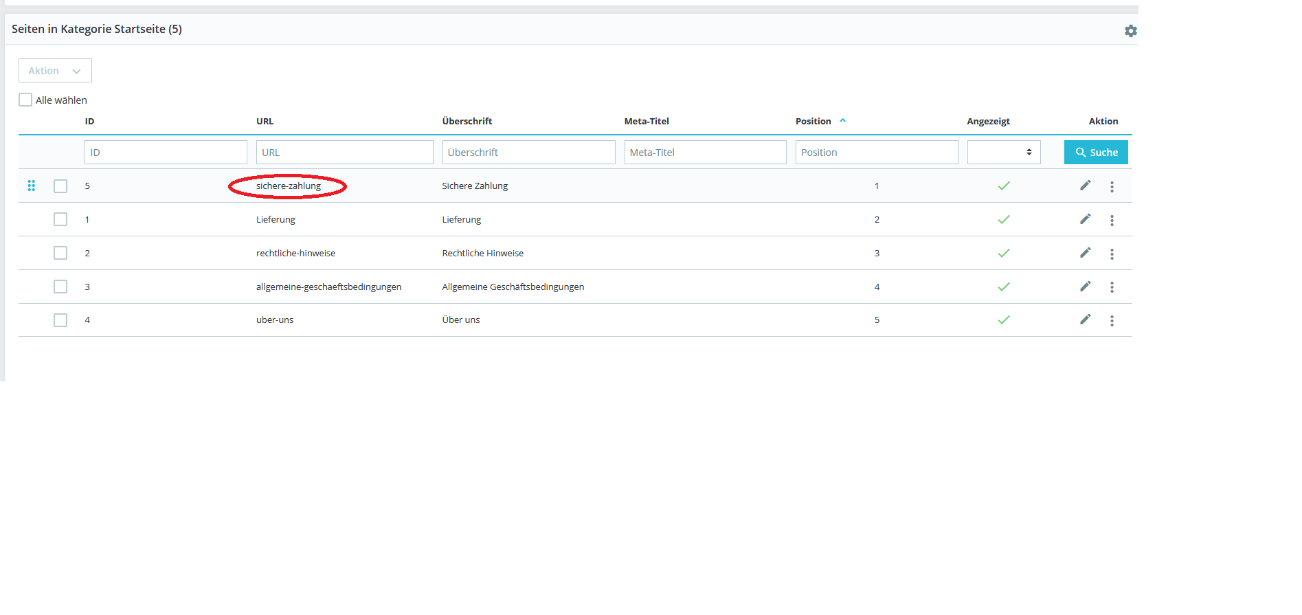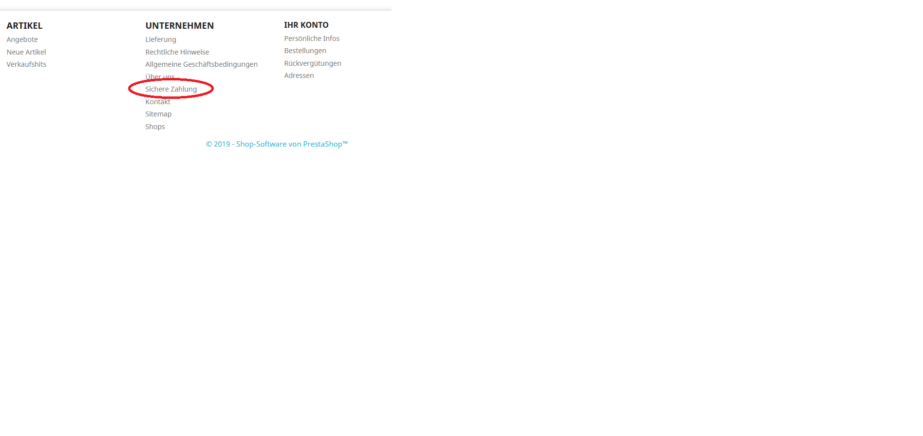 Paul Sack Posted October 20, 2019 Share Posted October 20, 2019 (edited) Hallo Allerseits, wie läßt sich die Reihenfolge der Links im Footer ändern ? Versuchte den Link "Sichere Zahlung" an die oberste Position zu bekommen. Gelingt zwar im Backend unter Design >> Seiten einfach - die Änderung wird jedoch im Shop nicht angezeigt. Erfolglos blieb bisher Smarty Cache löschen und Browser Cache löschen. Hat Jemand eine Idee ? Besten Dank für Tips Paul Edited October 24, 2019 by Paul Sack Verdeutlichung (see edit history) Link to comment Share on other sites More sharing options...
