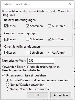 das verzeichniss "img" selbst, bei dir sieht es seltsam aus, rechtsclick dann berechtigung Ordner img mit Unterordnern Berechtigung 755 geben und testen eventuell Cache leeren