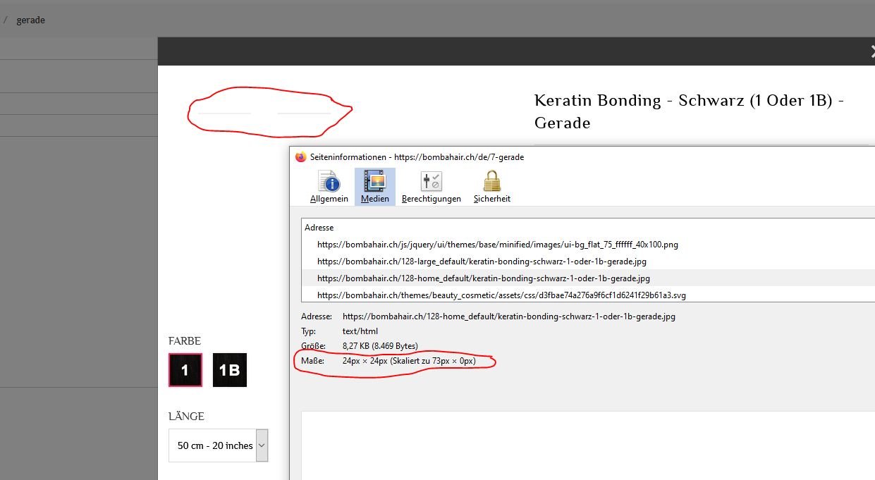 Die Einstellungen der Maße für die Bilder habe ich gefunden, das ist 64x64 eingestellt. Habe die Artikelbilder an der Stelle noch mal neu generiert. Hat nix gebracht.
