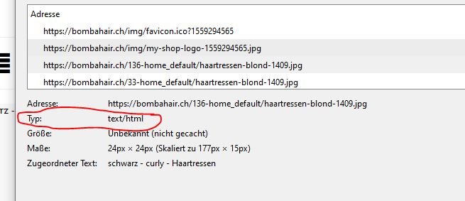 Die Dateiändung der Bilder ist klein, also jpg. Habe jetzt in einem Artikel das Bild artikel_tressen_schwarz_color1.jpg gelöscht und dafür ein 1.jpg anstelle des ursprünglichen hochgeladen. Wird im BO angezeigt. Im Frontoffice nach wie vor nichts.