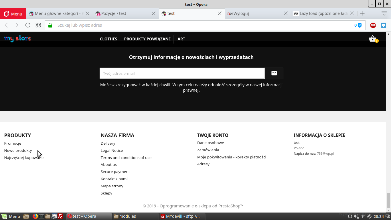 0 Namee Posted October 23, 2019 Author Share Posted October 23, 2019 To tak nie działa.Jeżeli tak zrobię to utworzę nową kategorię o nazwie nowości.A mnie chodzi o przycisk (link) na pasku menu który będzie kierował do bloku nowych produktów. Gdyby w module w którym tworzymy kategorie była możliwość dodawania linków to nie byłoby problemu. Taki link jest na dole strony po lewej ,jak na zrzucie. (przy myszce) Link to comment Share on other sites More sharing options...
