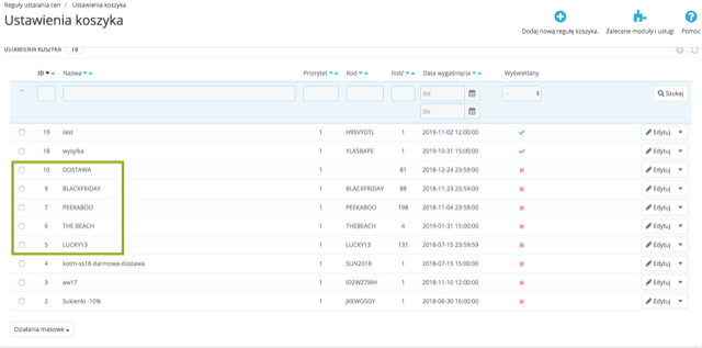 Robiłam je kilkukrotnie i czasem dawały efekt (te w zielonej ramce na screen’ie na pewno były ok), a czasem pojawiał się komunikat, że taki kod nie istnieje. Zwłaszcza, jeśli był to pojedynczy kod np. na darmową dostawę ograniczony do jednego klienta.