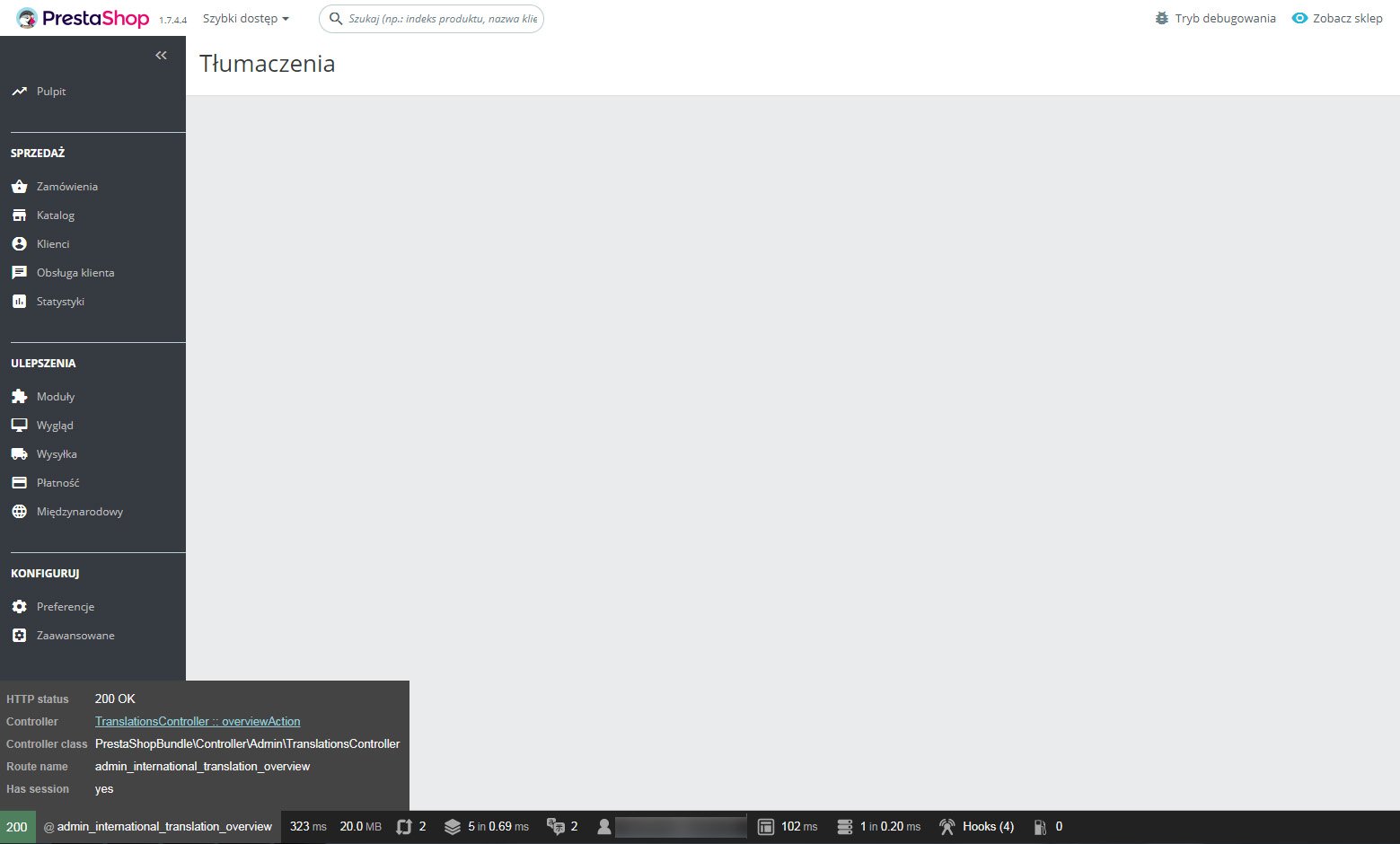 kreatywneprojektowan Posted October 26, 2019 Share Posted October 26, 2019 Witajcie, Tuż po przeniesieniu Prestashop na inny serwer wszystko w niej działa bez zarzutu ( a przynajmniej wszystko w co do tej pory wchodziłem zarówno w administracji jak i z frontu) Ale po wejściu w Międzynarodowy > Tłumaczenia i wybraniu z dropdown szablonu, języka i kliknięciu modyfikuj nie wczytuje absolutnie nic. Screen w załączniku. Co może być przyczyną? Link to comment Share on other sites More sharing options...