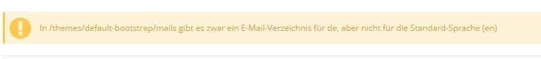 Prestashop schreibt nämlich die angepassten Übersetzungen in ein Mail-Verzeichnis des Templates, während die englischen Originale im Mail-Verzeichnis des Hauptverzeichnisses sind. Dieses Verzeichnis mails/en sollte jetzt eigentlich ebenso wie das Verzeichnis mails/de auch in deinem Template-Verzeichnis sein. Ist es aber nicht. Damit alles funktioniert, musst du das erst manuell nachholen, also