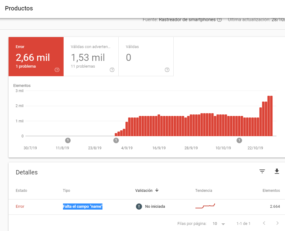 Jorge Sainz Posted October 28, 2019 Share Posted October 28, 2019 Desde el 31/08/19 se reflejan errores de “Falta el campo name” en el apartado de producto en mi Google Search Console. https://gyazo.com/2ef76dd7da1a7f332a35f0ae90749435 Versión de Prestashop: 1.6.1.23 Tema: Sunnytoo Panda Agradecería enormemente ayuda para resolver estos errores. Muchas gracias por adelantado y un cordial saludo, Link to comment Share on other sites More sharing options...