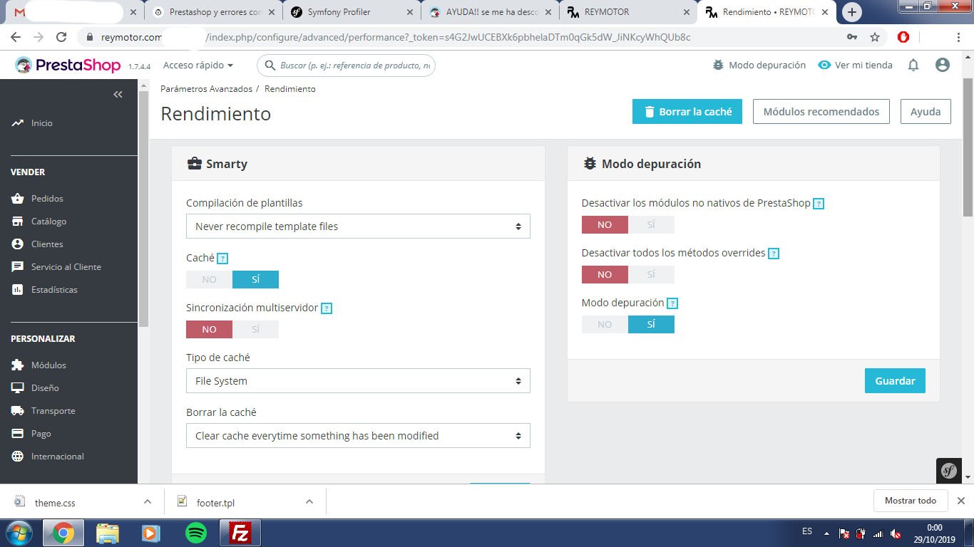 Gerardo Martinez G Posted October 28, 2019 Share Posted October 28, 2019 Animos,... • Y cada modificacion en archivos de Traducciones, , TPL y los CSS hay que limpiar cache de prestashop... • Te recomiendo Actives las 3 CCC, por que en un futuro si estas haciendo cambios en el archivo css o los js, tus clientes no veran los cambios... y a tus clientes no les podras decir que limpien la cache de su Navegador... Fue un pacer que te aya funcionado mi ayuda, hasta pronto 1 Link to comment Share on other sites More sharing options...