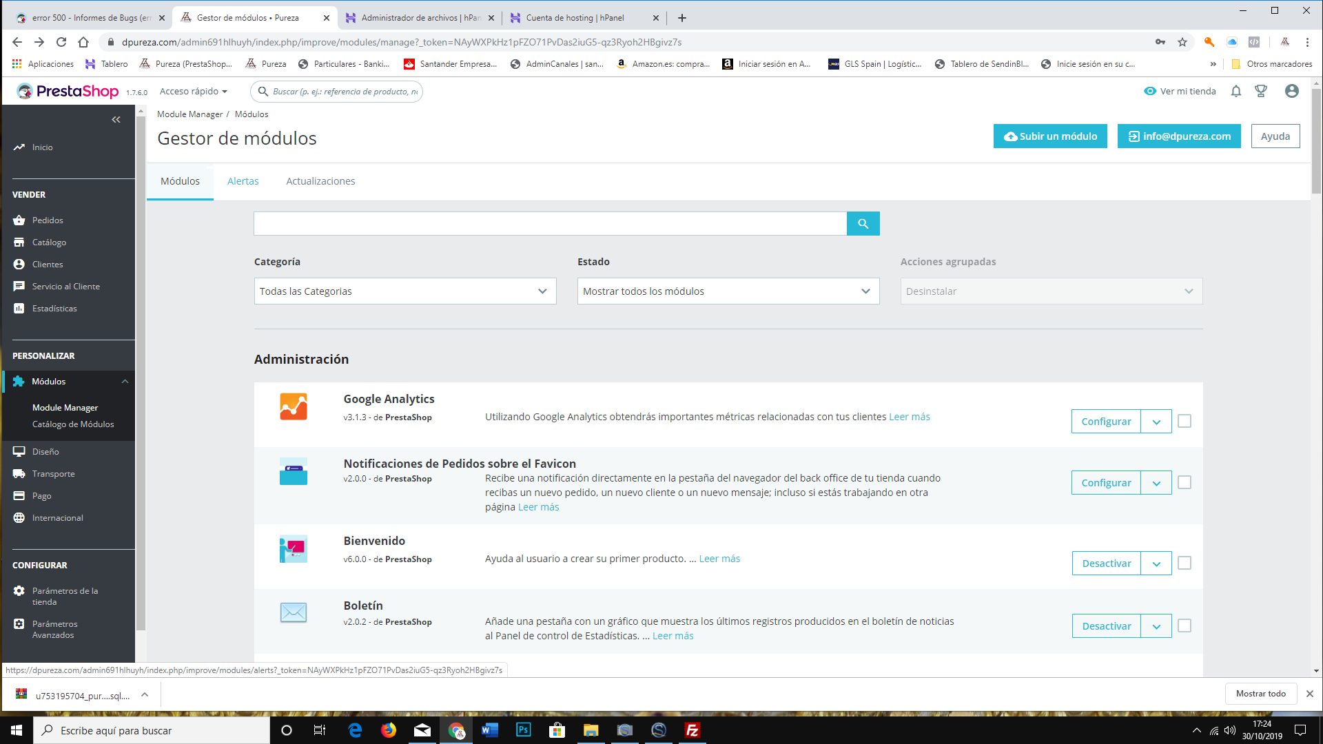 si te fijas donde pone Alertas y Actualizaciones debería aparecer unos globitos indicando el número de actualizaciones que hay pero debe haber algún modulo que este dando el error y tampoco me aparece eso