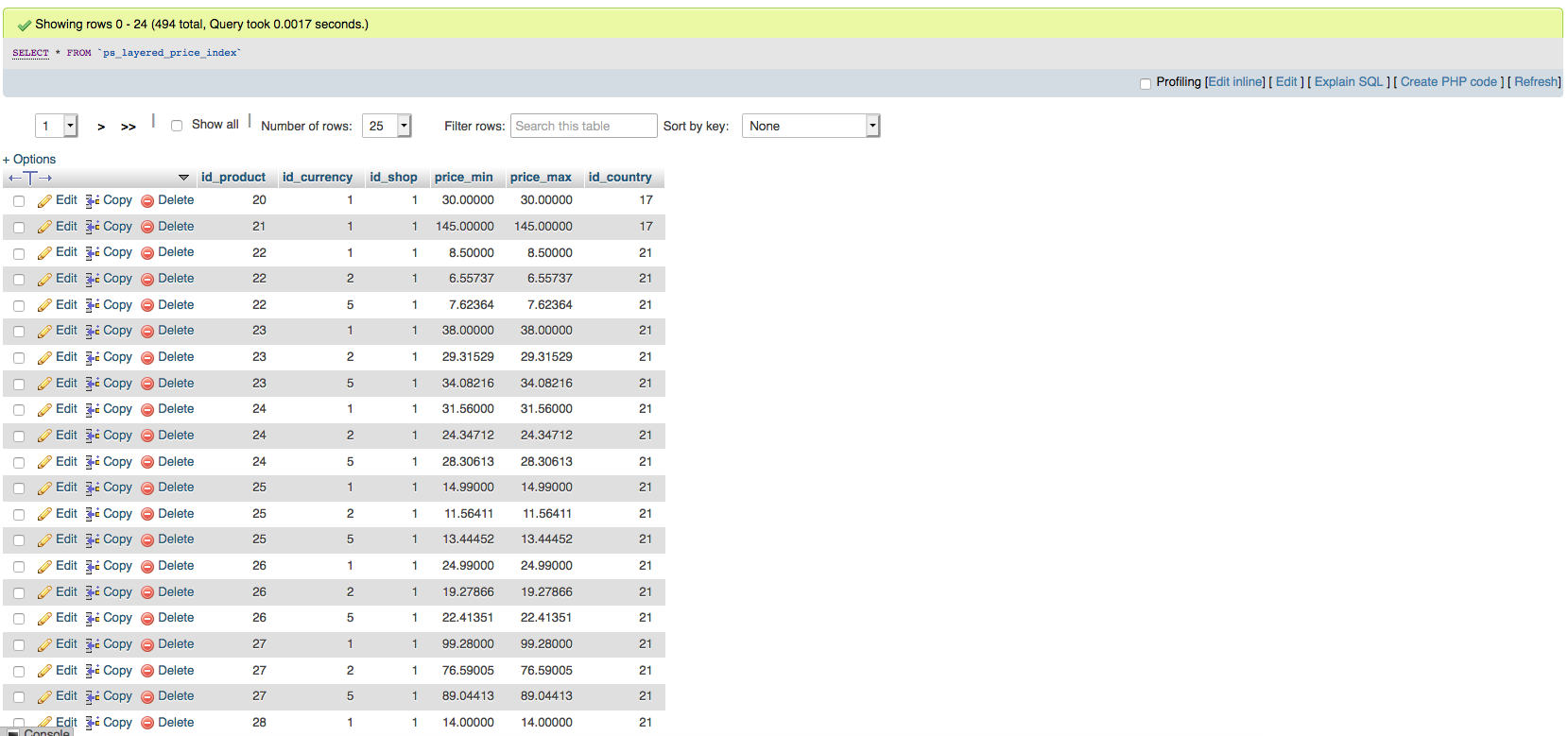 zomex Posted November 12, 2019 Author Share Posted November 12, 2019 36 minutes ago, PCQUATRO said: Check to see if you have a table in your database named xx_layered_price_index and if it exists check it´s contentes... Best Regards Yes I do have it, seems to contain every product. See below. Thanks Link to comment Share on other sites More sharing options...