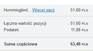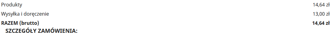Powinna być tu jeszcze dodana wysyłka, a wyświetla się sama cena produktów