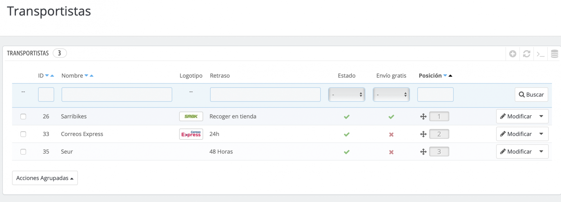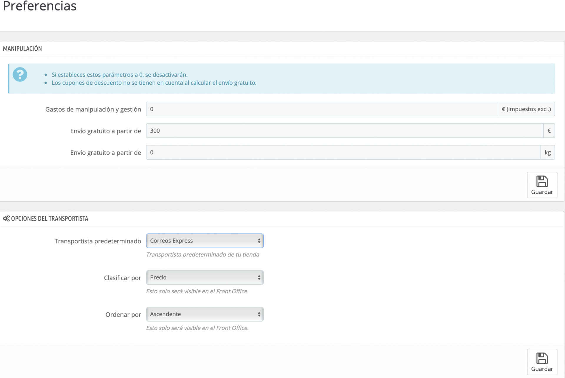 Estoy intentando configurar los transportistas en mi pagina web, hago todo bien (creo) pero luego solo me aparece el transportista que es gratuito, el resto no aparecen en la web, no se que tengo que hacer para solucionarlo. Si alguien puede aconsejarme, gracias y un saludo