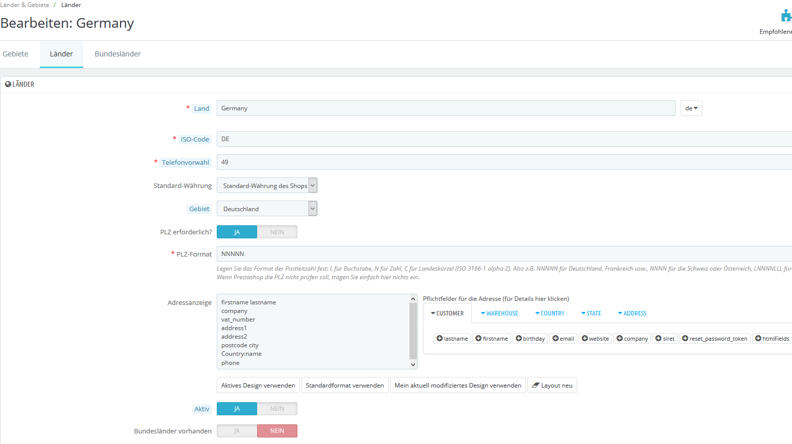 peterpan444 Posted November 20, 2019 Author Share Posted November 20, 2019 (edited) 20 hours ago, rictools said: Im zweiten Screenshot ist "Germany" offenbar keinem Gebiet zugeordnet Doch, siehe Screenshot. 20 hours ago, rictools said: Im zweiten Screenshot ist "Germany" offenbar keinem Gebiet zugeordnet. Davon abgesehen, wenn du einen deutschen Shop für innerdeutsche Lieferungen betreibst, warum heißt Deutschland dann nicht "Deutschland", sondern "Germany"? Das ist wohl eher Prestashop zugeschuldet. Dort sind die Namen der Länder alle auf Englisch, auch mit deutschem Sprachpaket. Edited November 20, 2019 by peterpan444 Image attach (see edit history) Link to comment Share on other sites More sharing options...