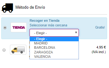 Añadir desplegable con tiendas en la opción Recogida en Tienda