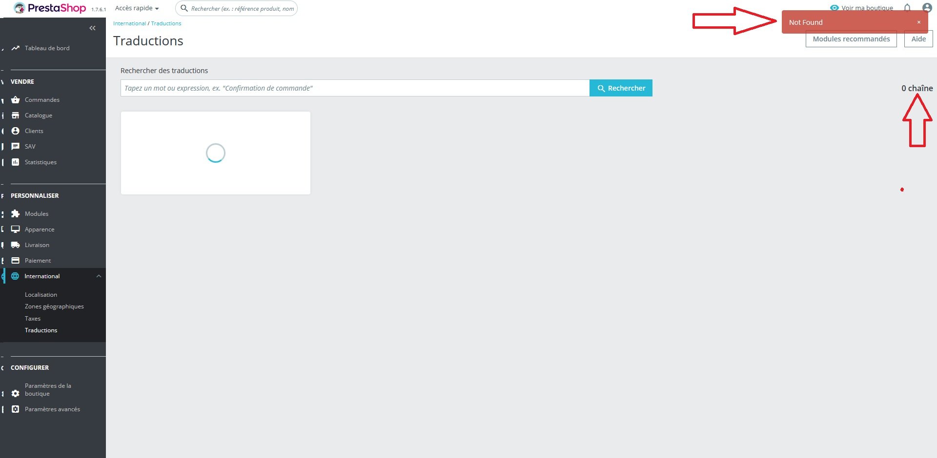 Translation NOT found 0 chaines prestashop 1.7.6