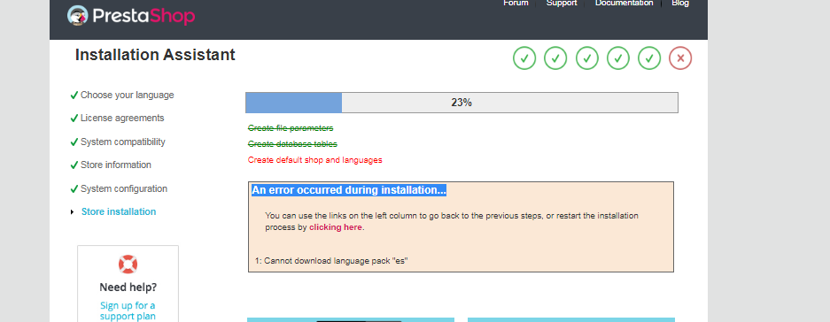 Mario R. Posted November 20, 2019 Share Posted November 20, 2019 Estoy tratando de instalar prestashop 1.7.6.1 . PHP Version 7.3.0 Apache VersionApache/2.4.37 (Win32) OpenSSL/1.1.1a PHP/7.3.0 windows 7 Server Root C:/xampp/apache Siempre se detiene aquí . Gracias , de antemano. Mario R. Vásquez S. Link to comment Share on other sites More sharing options...