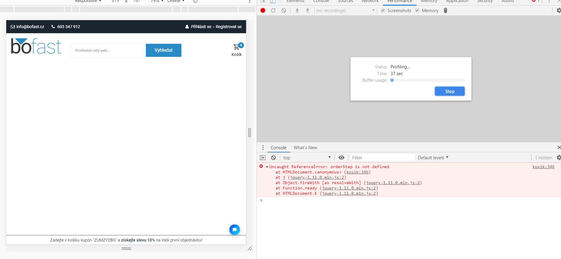 BofastGlobal Posted November 20, 2019 Share Posted November 20, 2019 (edited) Na našich stránkách www.bofast.cz máme problém s načítáním stránky. Někdy se stane (většinou když se vracíte zpět nebo na homepage přes logo), že se stránka nenačte celá, načte se pouze hlavička a pak už je jen loading a zbytek se nenačte. Zde jsem nahrál video, kde to můžete vidět: https://drive.google.com/file/d/1qgXEGqGJlrkdoGPqP0-Owb7G3zkqVAIp/view?usp=sharing Dá se to nasimulovat tak, že si např. dáte více položek do košíku, potom do něj přejdete a v košíku kliknete na logo webu, aby jste se dostali zpět na hlavní stránku. Ne vždy se ten problém ale objeví, někdy se to musí zkusit víckrát. Často se to stane také v nějakém kroku objednávky apod. Používáme verzi PS: 1.7.5.1 Moc Vás prosím o pomoc, jsme z toho už opravdu zoufalí a přicházíme tím o objednávky Předem moc děkuji. Edited November 20, 2019 by BofastGlobal (see edit history) Link to comment Share on other sites More sharing options...