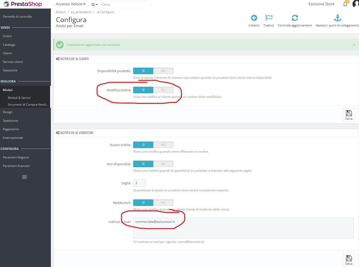 Essegi-Studio Posted November 21, 2019 Share Posted November 21, 2019 Buongiorno, so che è un problema già visto e rivisto, ma io ancora ce l'ho. Su prestasho 1.7.3.3 ho installato il modulo Avvisi per Email v2.1.1 di PrestaShop Il modulo è correttamente configurato come da screen allegato, ma le email continuano a non arrivare. Come potrei risolvere? Grazie! https://i.ibb.co/CPx5WD9/ps.jpg Link to comment Share on other sites More sharing options...