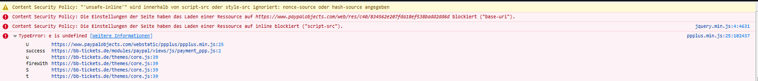 Allerdings habe ich ein Problem beim Zahlen mit Paypal. Am Ende des Kaufprozesses steht dann da "Sie werden in zu Paypal weitergeleitet, das kann ein pasar Sekunden dauern". Doch leider passiert nichts. Ich habe schon Einstellungen verändert/angepasst und das Modul neu installiert, aber nichts hat geholfen.