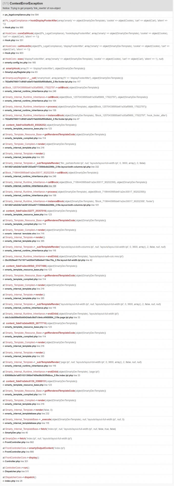 Hai un problema con il modulo Legal Compliance. Da qualche parte si aspetta un link che pero' non trova.