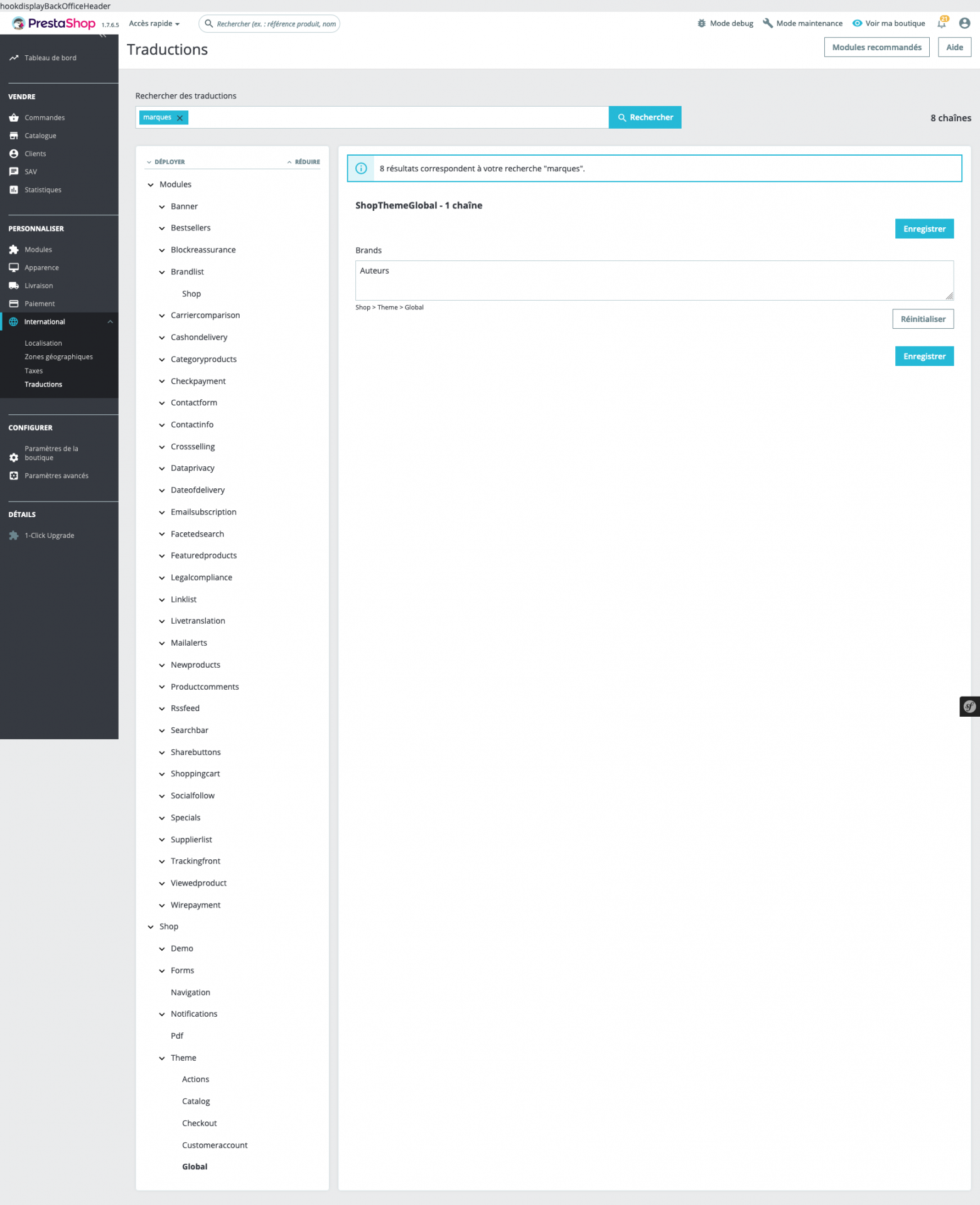 Mediacom87 Posted July 22, 2020 Share Posted July 22, 2020 (edited) Bonjour, Après mes déboires pour un client pour réussir à traduire un truc tout tout bête : https://www.mediacom87.fr/comment-effectuer-une-traduction-sur-prestashop-17/ Je me suis plongé dans votre problème et en faisant la traduction du template Classic et en trouvant les champs annoncés comme à modifier contenant le terme Marque, car oui il faut tout déplier et cliquer sur chaque rubrique en espérant que cela s'ouvre, enfin que le nom passe en gras pour nous indiqué que le truc à un champs à modifier et que l'on s'amuse à remonter pour afficher le champs alors là on arrive à traduire le fil d’Ariane. Mais cela demande de la patience et une certaine abnégation pour y arriver, mais ce challenge en valait la peine. Si si, sur l'image vous découvrez bien que c'ets le dernier truc à ouvrir qui comprend le texte à traduire ... ce fut long. Edited July 22, 2020 by Mediacom87 (see edit history) 1 Link to comment Share on other sites More sharing options...