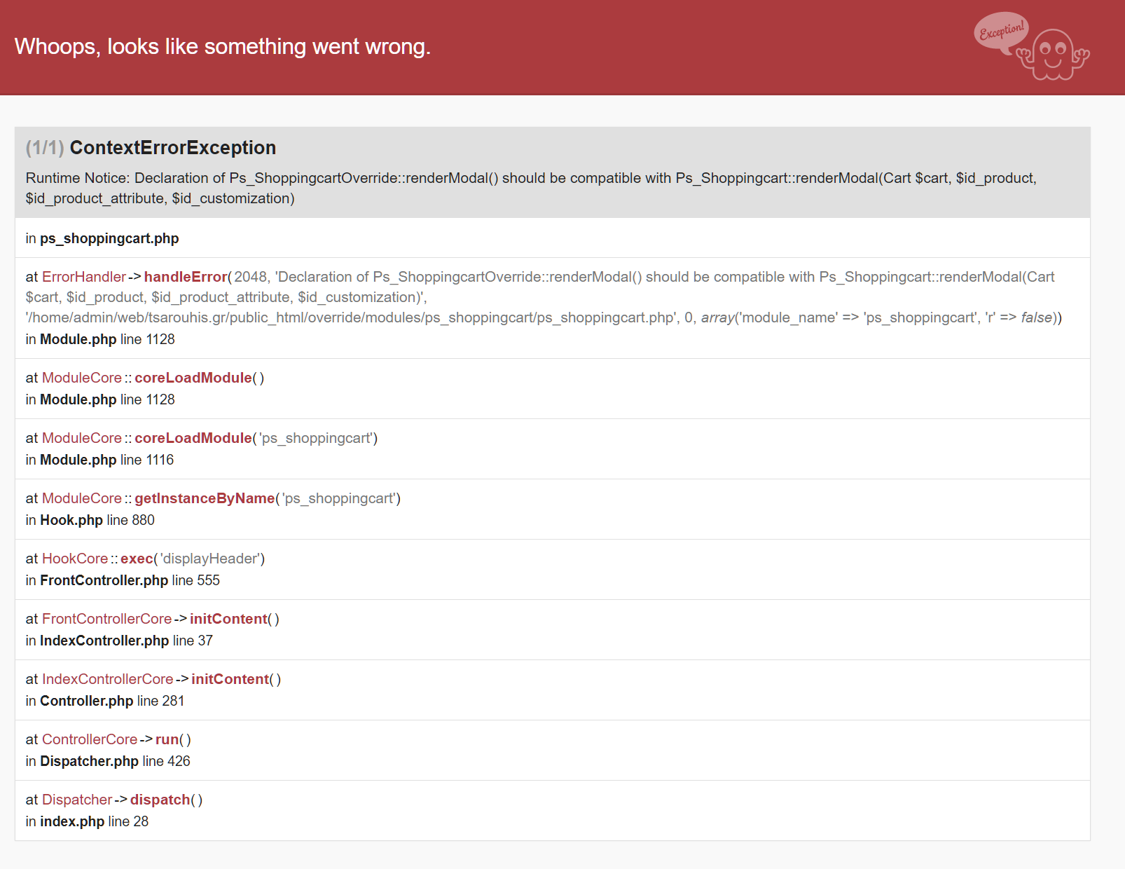 There is an override for PS_shoppingcart installed causing this issue. Check if a module did this and contact the module developer.