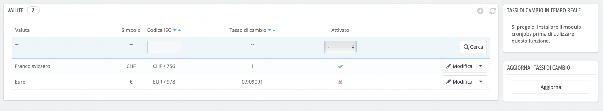 gmatesi Posted January 9, 2020 Share Posted January 9, 2020 Salve a tutti, sto riscontrando dei problemi con il cambio valuta. Dopo avere impostato un tasso di cambio e il modulo, vi è un problema nel calcolo della valuta. Attualmente ho impostato come valuta di default il franco svizzero (CHF) Ho attivato la valuta € con un cambio 0.909090 (facciamo 0.9 per comodità) Tuttavia nella barra di ricerca i prezzi non sono convertiti nel modo corretto, ovvero avviene una "doppia conversione". Nell'immagine 1 allegata si vede un prodotto ad un prezzo in € di 329.75, mentre la pagina prodotto mostra 362.73 € Nella ricerca viene applicata una doppia conversione: 399 CHF al cambio di 0.9 = 362,73 € , applicando nuovamente il tasso di cambio su 362,73 € x 0.9 = 329.75€ Il problema si estende anche alla scheda di prodotto se l'utente si collega al sito internet dall'Italia, dove viene applicata una doppia conversione. Qualcuno può aiutarmi? Grazie mille in anticipo per il vostro supporto. Saluti Link to comment Share on other sites More sharing options...