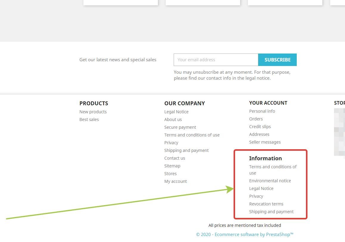 Dew1 Posted February 1, 2020 Share Posted February 1, 2020 On 1/18/2020 at 6:10 AM, Lsepolis123 said: In Footer How remove completely the red circled in attachment...? In other words the "Information block" of footer... 1.7.6.2 Prestashop with JA Marketplace Plugin I think you need to disable the 'legal compliance' module. Link to comment Share on other sites More sharing options...