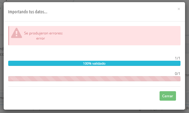 t-prabal Posted January 20, 2020 Share Posted January 20, 2020 (edited) Error al importar productos y no me especifica donde, ni porque. Adjunto imagen. CSV con 2 productos identicos pero modificando los id ( 1 y 2 ), indico que columnas pertenecen a cada, y cual de ellas se han de ignorar, hago clic en el boton de Importar, se valida 2 1/2, y solo se me importa el primero ya que salta un error. En el caso de solo importar 1 producto también me salta el error. pero igualmente me lo importa. Por favor necesito ayuda!!!! Edited January 20, 2020 by t-prabal (see edit history) Link to comment Share on other sites More sharing options...
