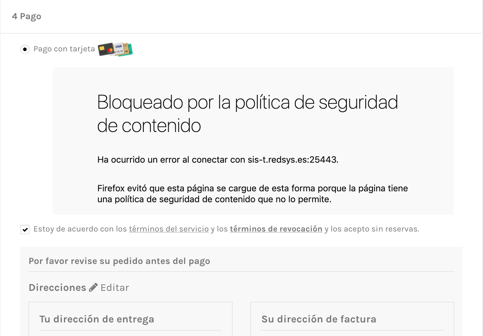 pepelillo Posted January 23, 2020 Author Share Posted January 23, 2020 Gracias Gusman126!! Acabo de hacer lo que comentas he actualizado primero 1 click upgrade y después prestashop a la versión 1.7.6.3 que es la última. Después he desintalado el módulo de redsys y he instalado el nuevo versión 4.0 i parece que hemos retrocedido algo porque ahora me bloquea el contenido cuando selecciono pago con tarjeta y no puedo ni realizar la compra. Adjunto pantallazo con la ventana emergente que me sale. Como siempre Gracias por la ayuda!! Link to comment Share on other sites More sharing options...
