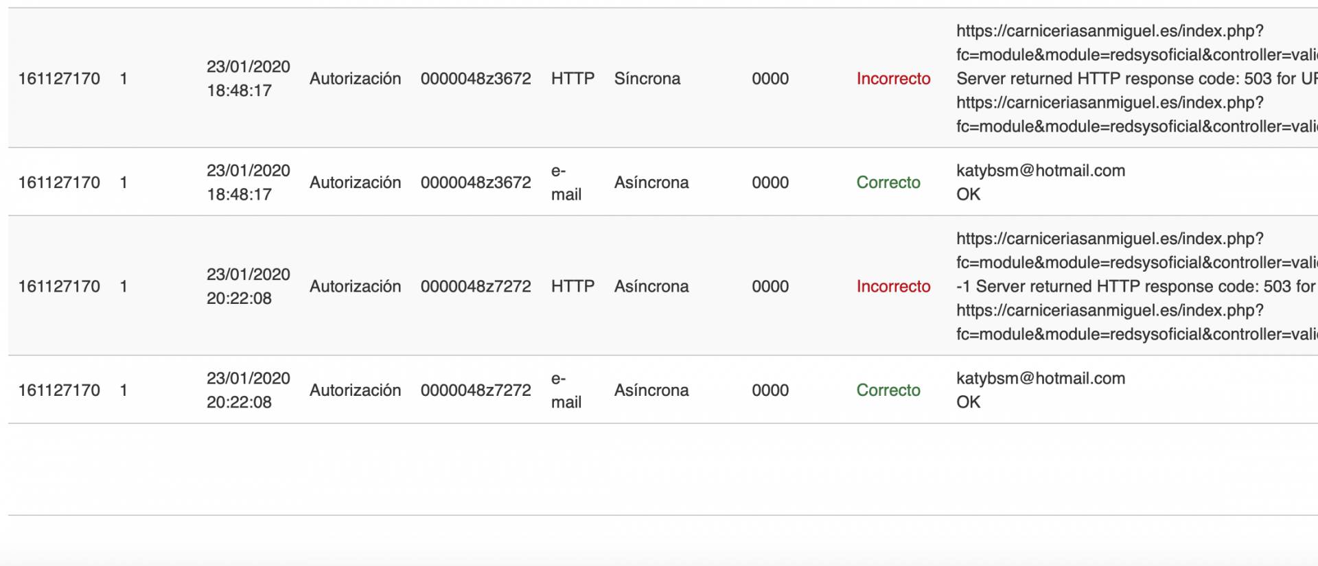 pepelillo Posted January 22, 2020 Author Share Posted January 22, 2020 (edited) Gracias por tu respuesta. El caso es que recibo los emails de compras realizadas por otros medios como transferencia bancaria pero no los realizados por Redsys. De todas formas ya he instalado y configurado el módulo que comentas y sigue sin funcionar. Respecto al tema del pedido es que en el detalle de pedido me aparece como cancelado. En la vista general no aparece el estado del pedido. Adjunto pantallazo de esto Edited January 22, 2020 by pepelillo (see edit history) Link to comment Share on other sites More sharing options...