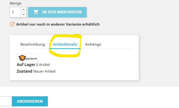 Shad86 Posted January 24, 2020 Share Posted January 24, 2020 Füg mal in die theme.css folgendes hinzu: .nav-link[href="#product-details"] { display: none; } Bei mir kann ich den Reiter so entfernen. #product-details könnte bei dir etwas anders heißen, das musst du mal nachgucken was bei dir an dem Reiter steht. Sollte das klappen kannst du das dann fest in die custom.css einfügen damit es updatesicher bleibt. Link to comment Share on other sites More sharing options...