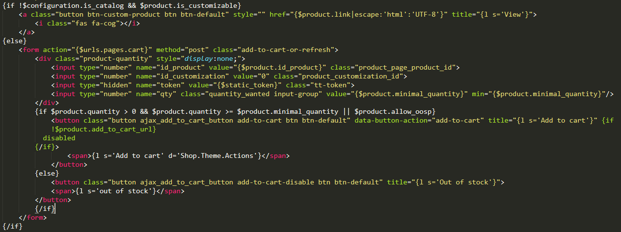 Guillaume77 Posted January 23, 2020 Share Posted January 23, 2020 Bonjour, Voilà, aujourd'hui mon thème prévoit deux boutons au niveau de la liste des produits dans les catégories : "Ajouter au panier" et "comparer". Je souhaite mettre un bouton "Personnaliser" au lieu de "Ajouter au panier" quand un produit est personnalisable. J'ai essayé d'utiliser cette condition que j'ai trouvé dans le fichier product.tpl dans le dossier templates/catalog : {if $product.is_customizable} Cependant cela ne fonctionne pas. Voici le détail avant et après : AVANT : APRES : Est-ce que quelqu'un saurait comment vérifier si un produit est personnalisable ou pas pour afficher ou cacher un truc ? Merci Link to comment Share on other sites More sharing options...
