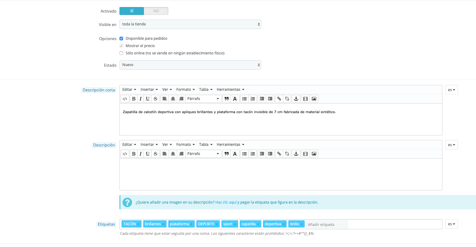Descripcion larga no aparece