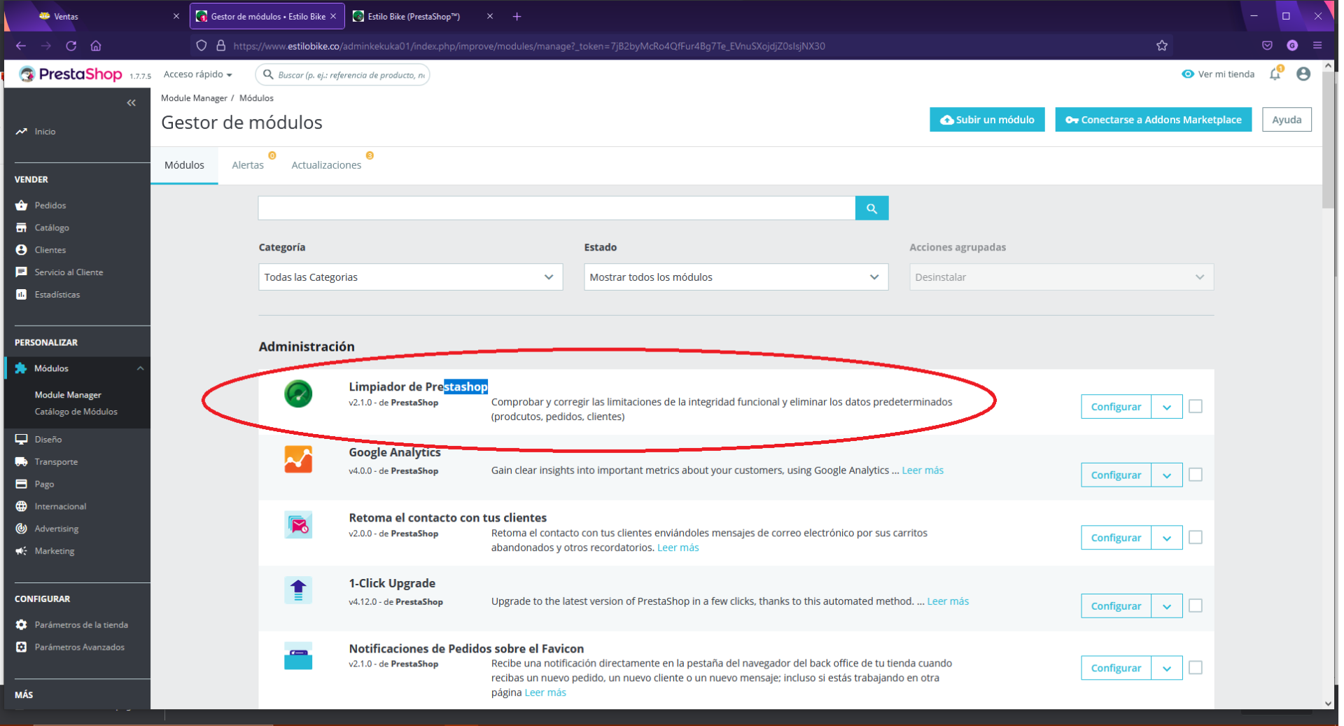Biscotto Posted August 10, 2021 Share Posted August 10, 2021 12 hours ago, Gabriel said: I can't find this module to download, it module was by defaul, plaese try to find with the name: cleaning to prestashop, on the administration category I did a search, and this seems to be a module that is no longer maintained. only an old version is available on Github, which I don't even think is compatible with Prestashop 1.7.x. Anyway, it seems to be a module to delete products or databases. How did you use it to correct the problem? Link to comment Share on other sites More sharing options...