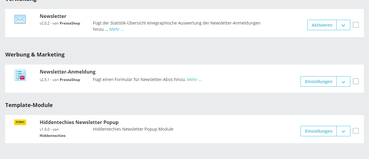 see_k Posted January 31, 2020 Share Posted January 31, 2020 Hallo Wenn ich ein Modul habe wie kann ich herausfinden was der Ordner ist auf dem FIlessystem Möchte im theme.yml gewiesse Module deaktiveren to_disable: - ps_banner - ps_customtext Link to comment Share on other sites More sharing options...