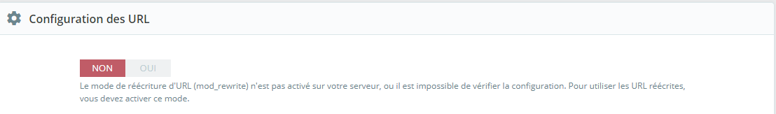 Je m'arrache les cheveux depuis hier soir car voici ce que m'affiche Prestashop au sujet des URL simplifiés (voir screen).
