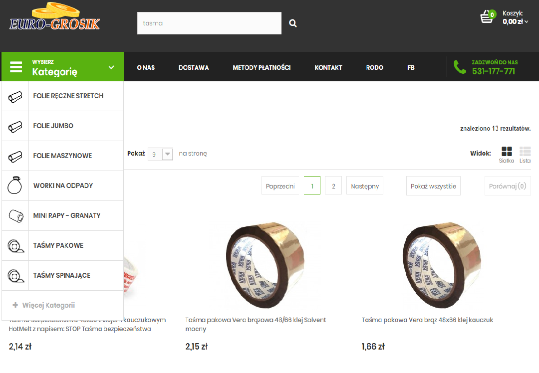 Tu można zobaczyć jak to funkcjonuje na stronie http://eurogrosik.pl/szukaj?controller=search&orderby=position&orderway=desc&search_query=tasma&submit_search=