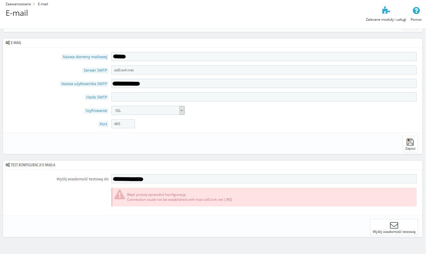 Na hostingu ovh pojawia mi się błąd podczas wysyłania wiadomości email.